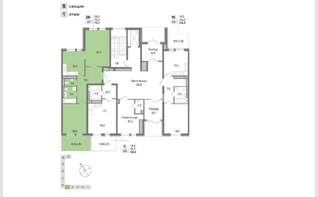 Продаётся стильная 2-комнатная квартира-распашонка на 1 этаже с собственной террасой 9,2 м2!