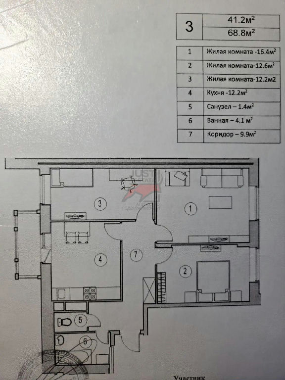 Один взрослый собственник. Нет зарегистрированных лиц. Быстрый выход к сделке.