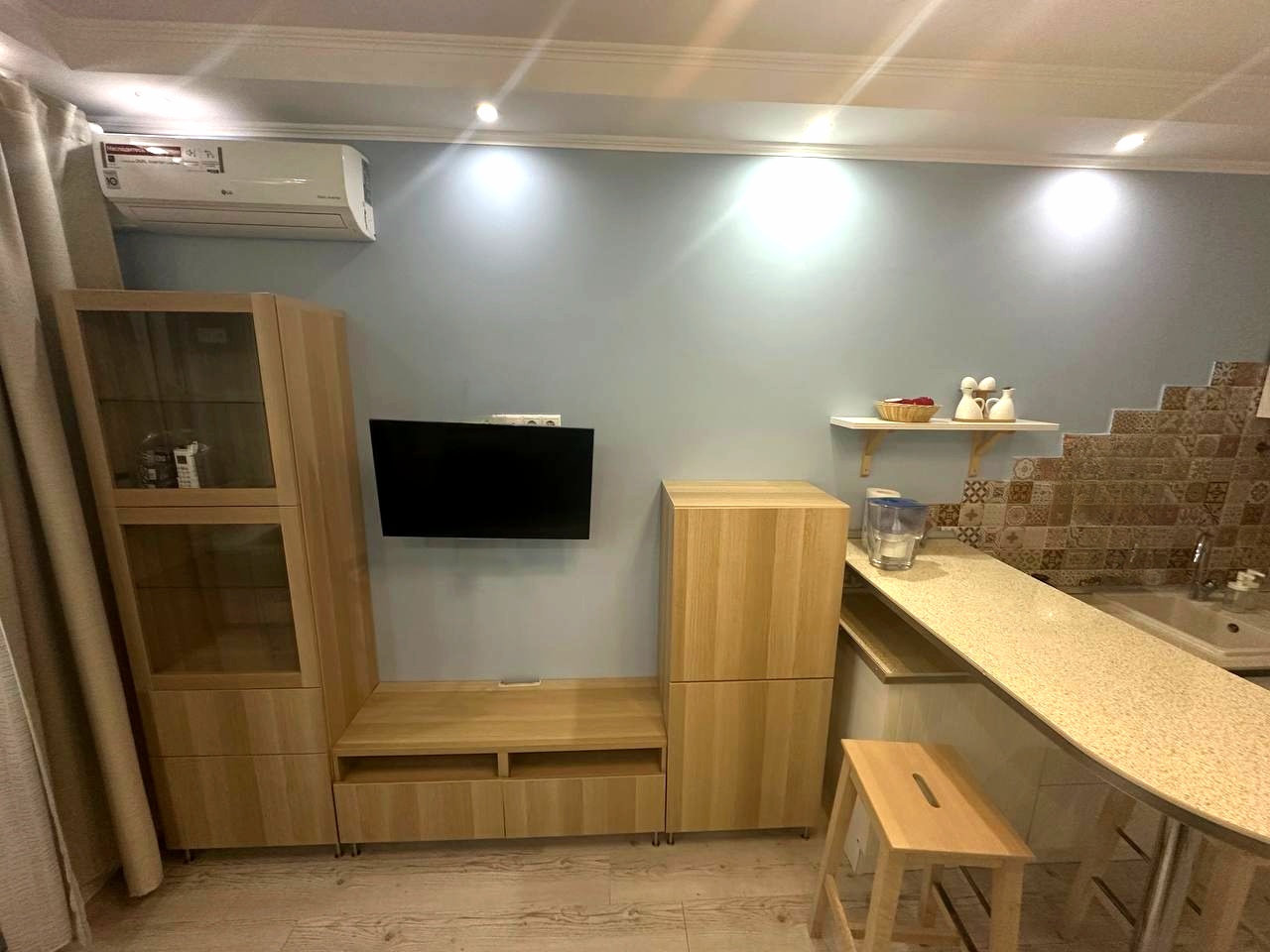 Кондиционер делает студию комфортной в любое время года.