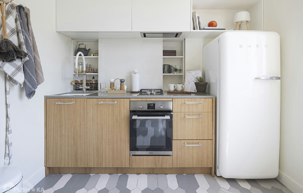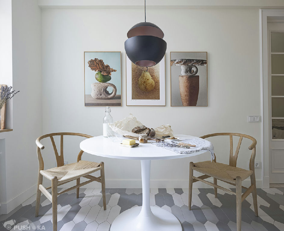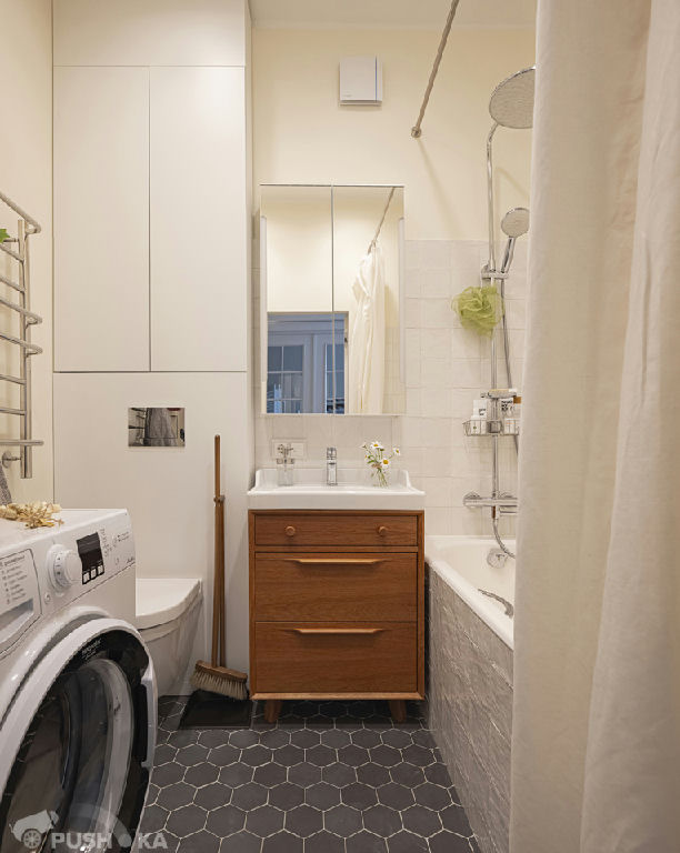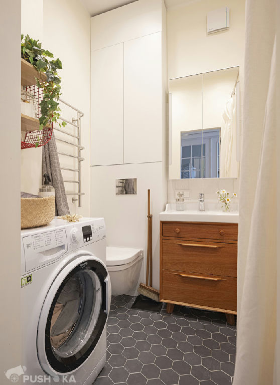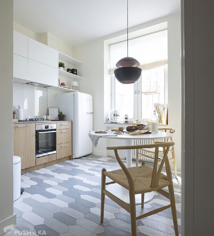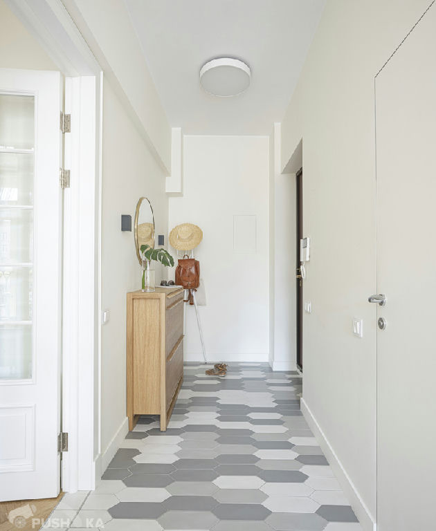 Светлая однокомнатная квартира с авторским ремонтом в сталинском доме. Интерьер выполнен в стиле mid-century modern.
