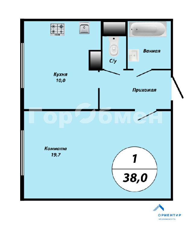 Общая: 38 м2