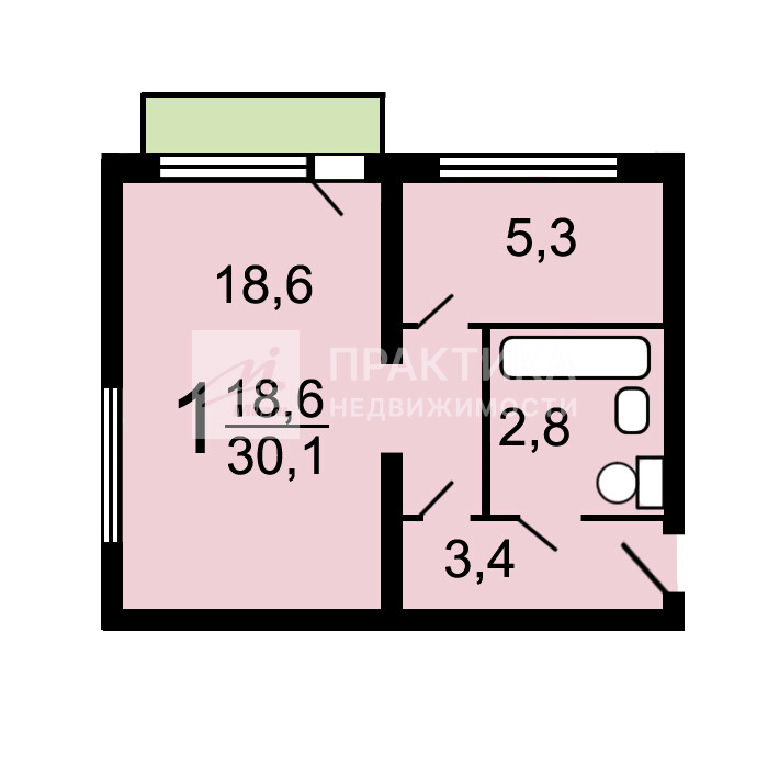 Общая: 30,1 м2