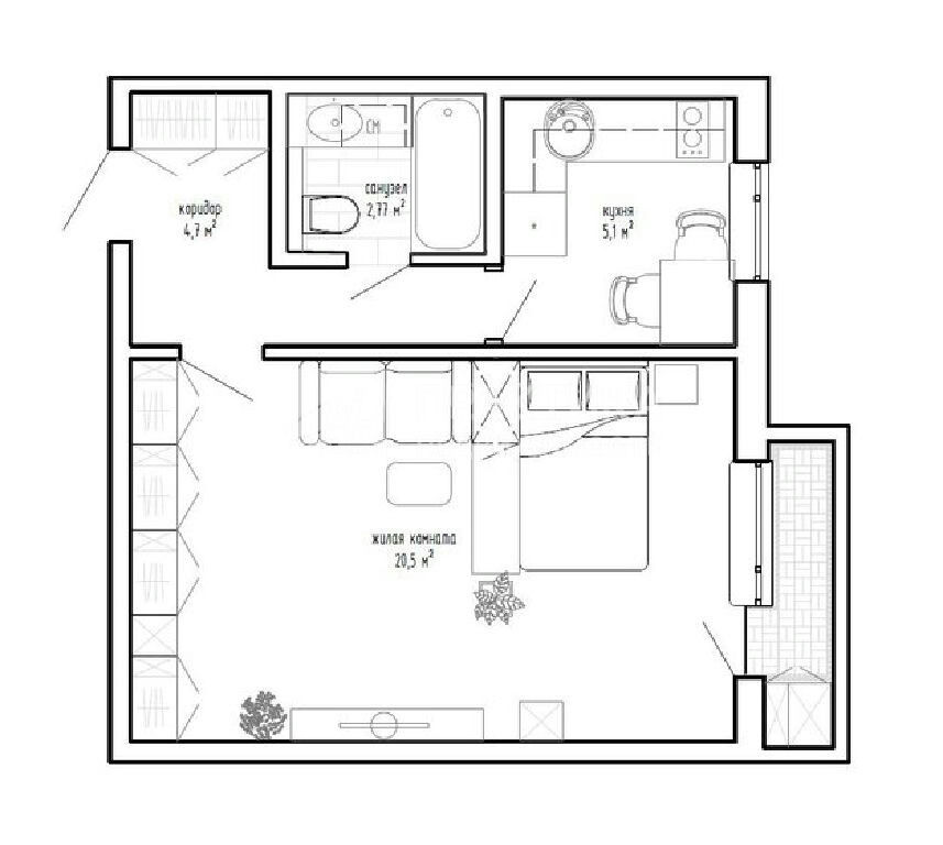 Жилая: 20,5 м2