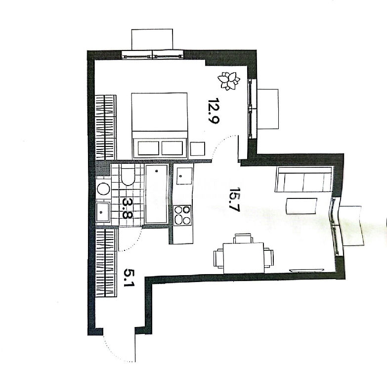 Жилая: 12,9 м2