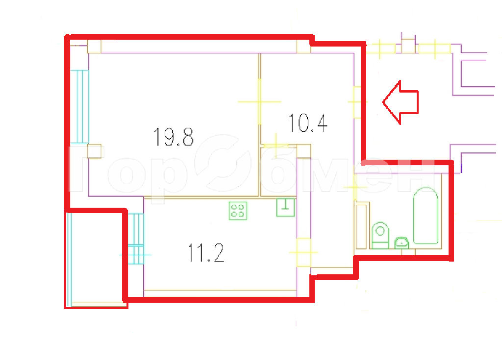 Жилая: 19,8 м2