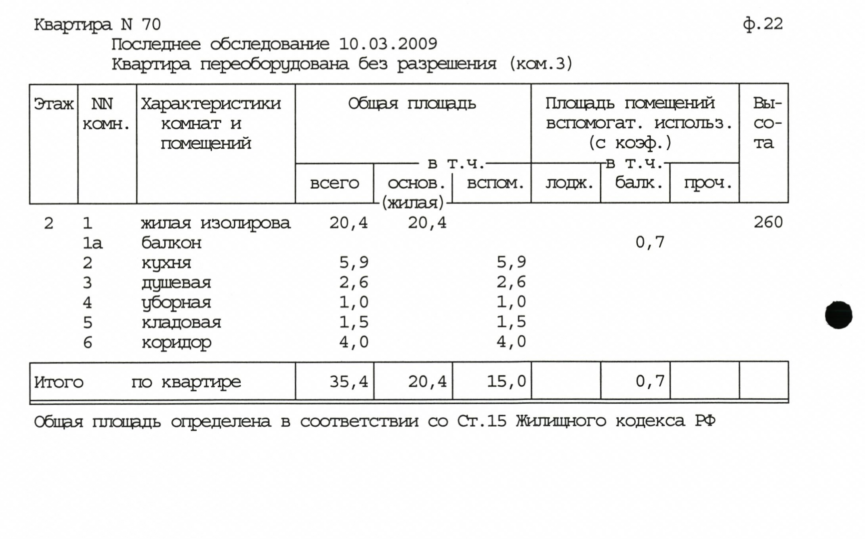 Жилая: 20 м2