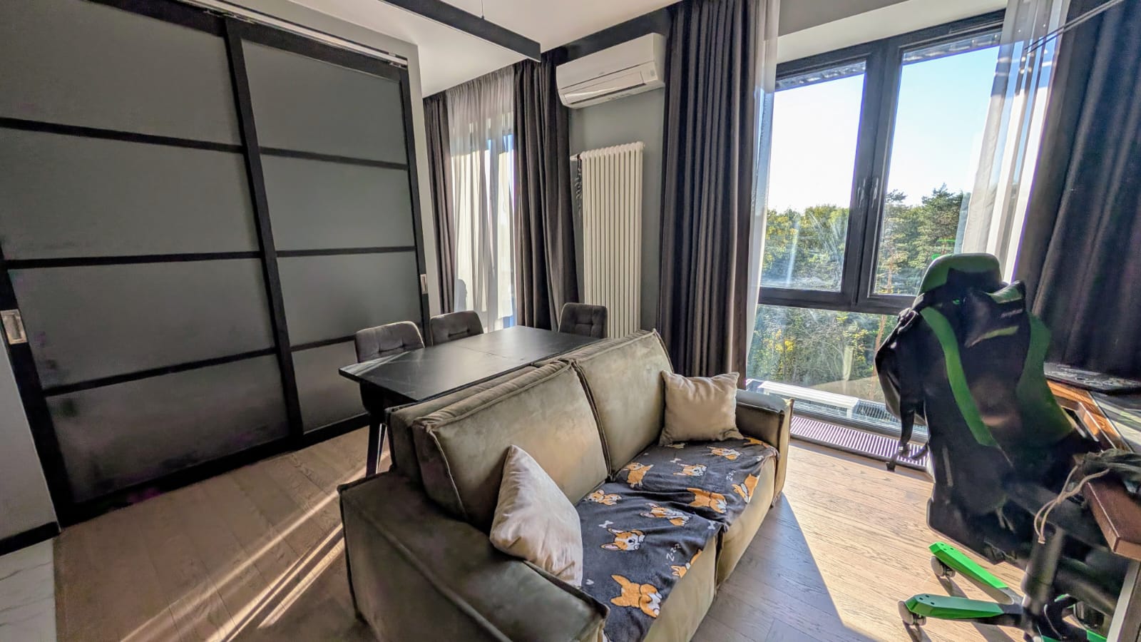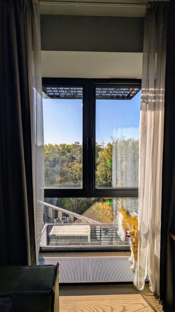 Панорамные окна с видом на Химкинский лесопарк.