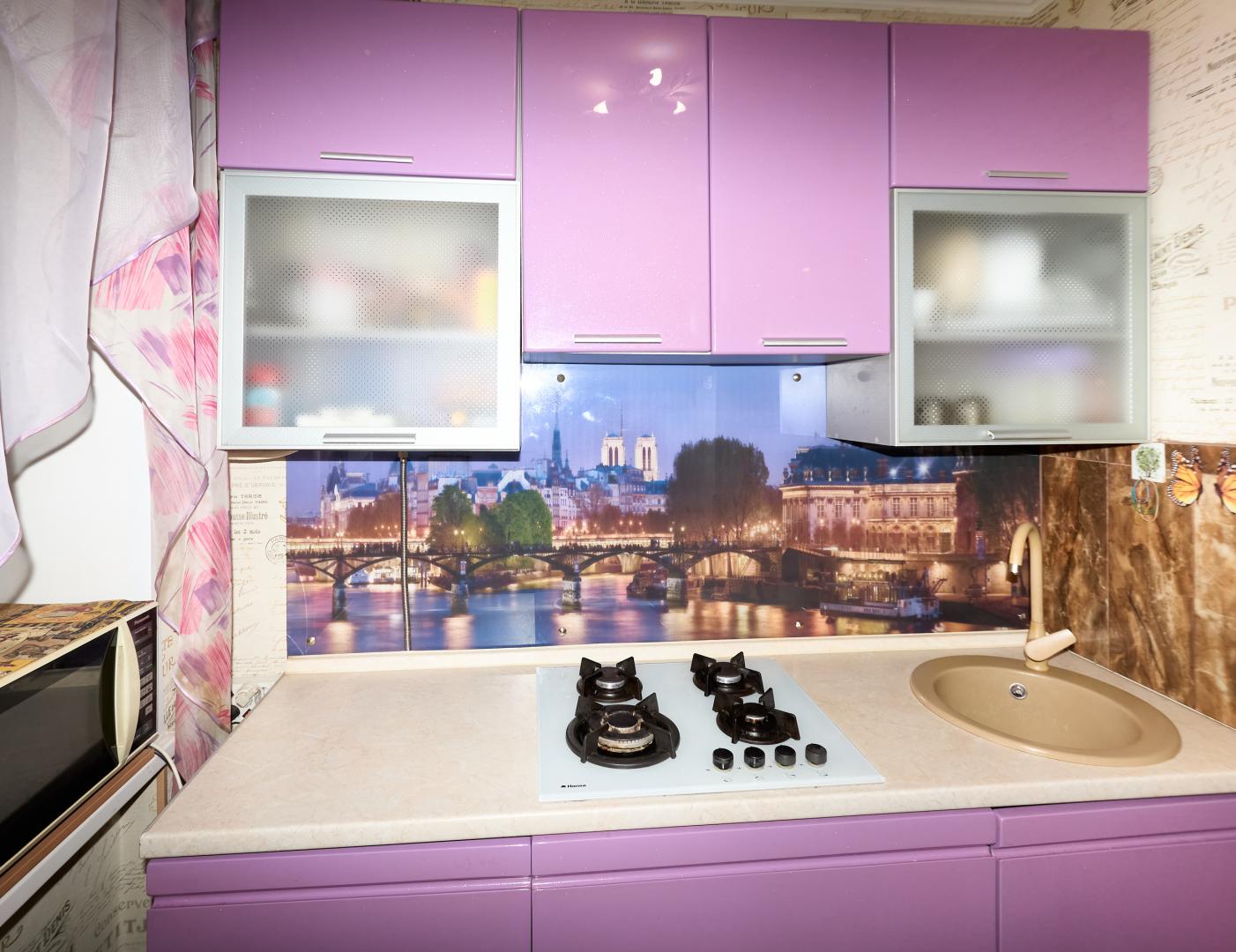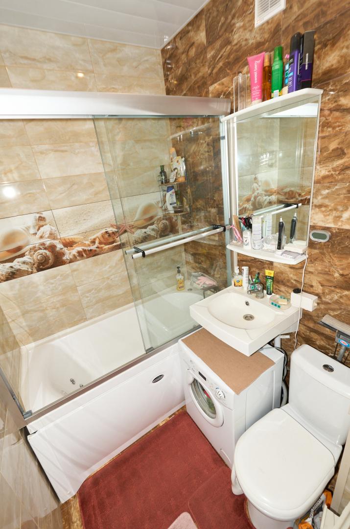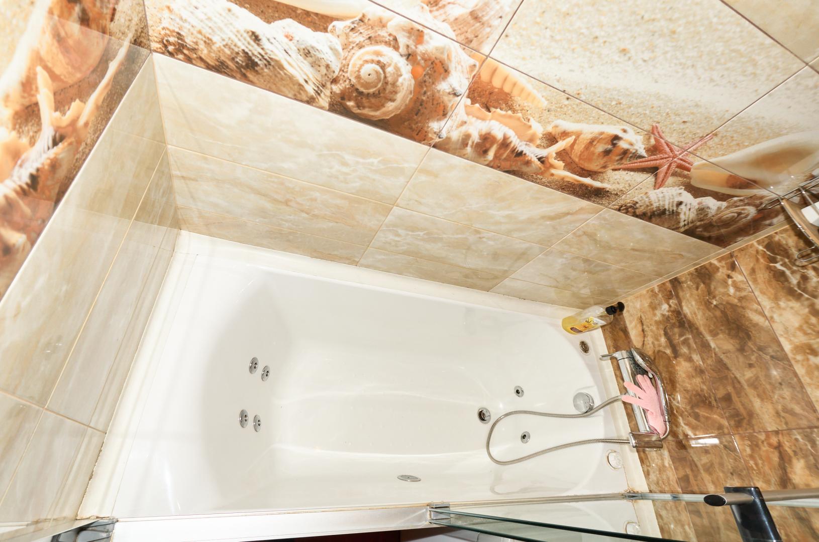 Встроенная кухня с бытовой техникой. В большой комнате - кондиционер. В ванной джакузи, стеклянные шторки.