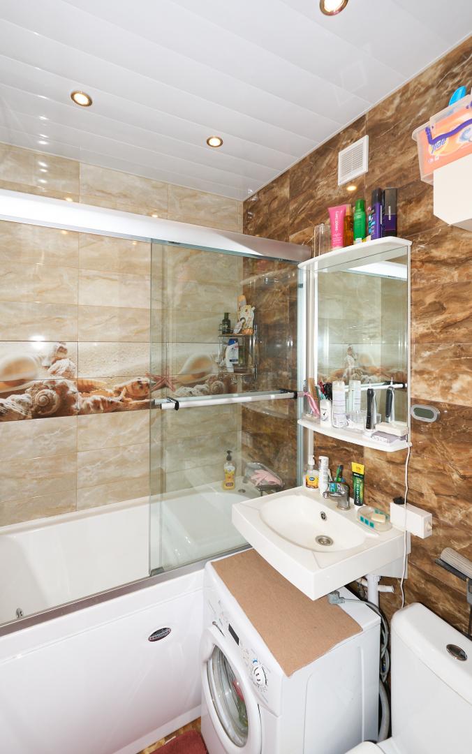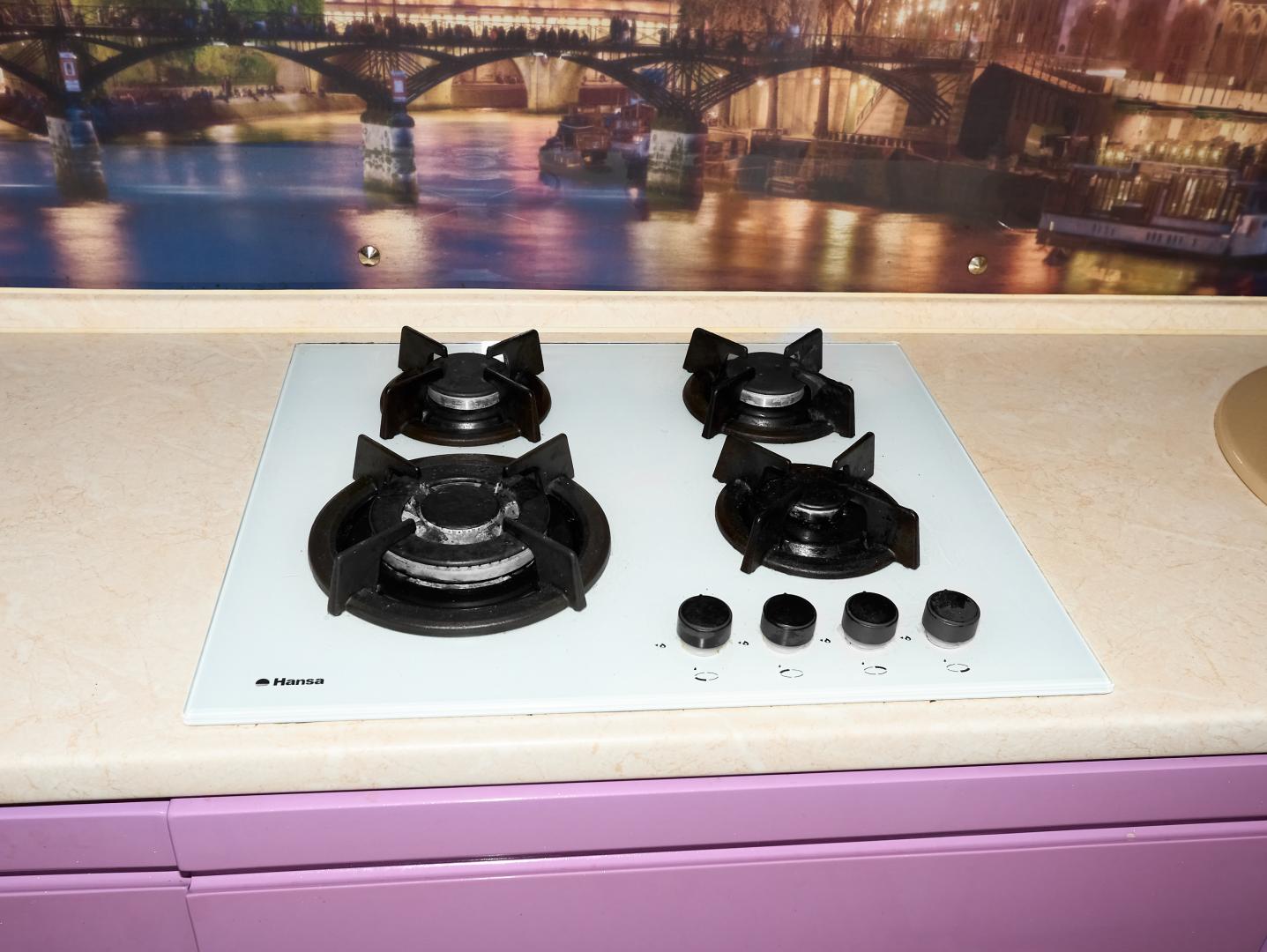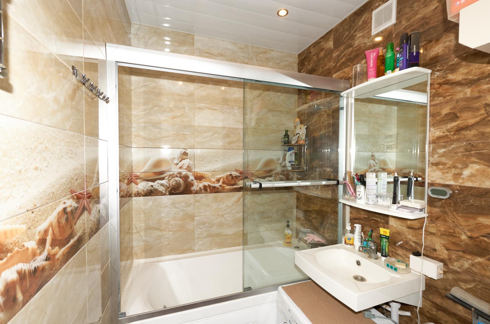 Встроенная кухня с бытовой техникой. В большой комнате - кондиционер. В ванной джакузи, стеклянные шторки.