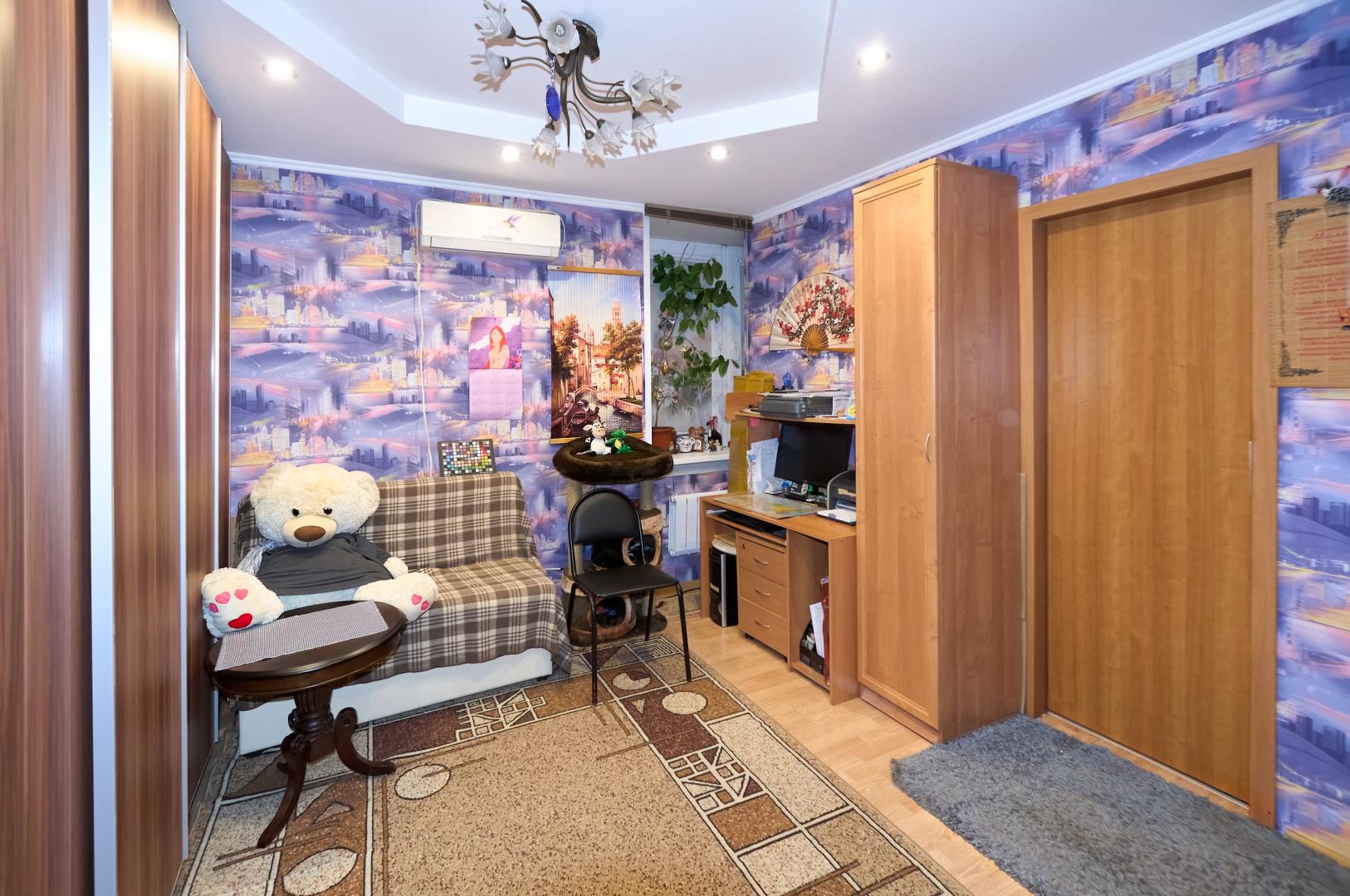 В квартире выполнен качественный капитальный ремонт с использованием качественных и дорогих импортных материалов. Стены выровнены. Заменены радиаторы, электропроводка, электрика, сантехника, трубы и канализация. B квартире ламинат. Во всей квартире установлены стеклопакеты.