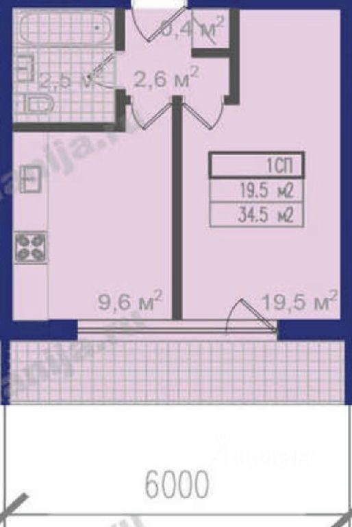 Общая: 34,3 м2