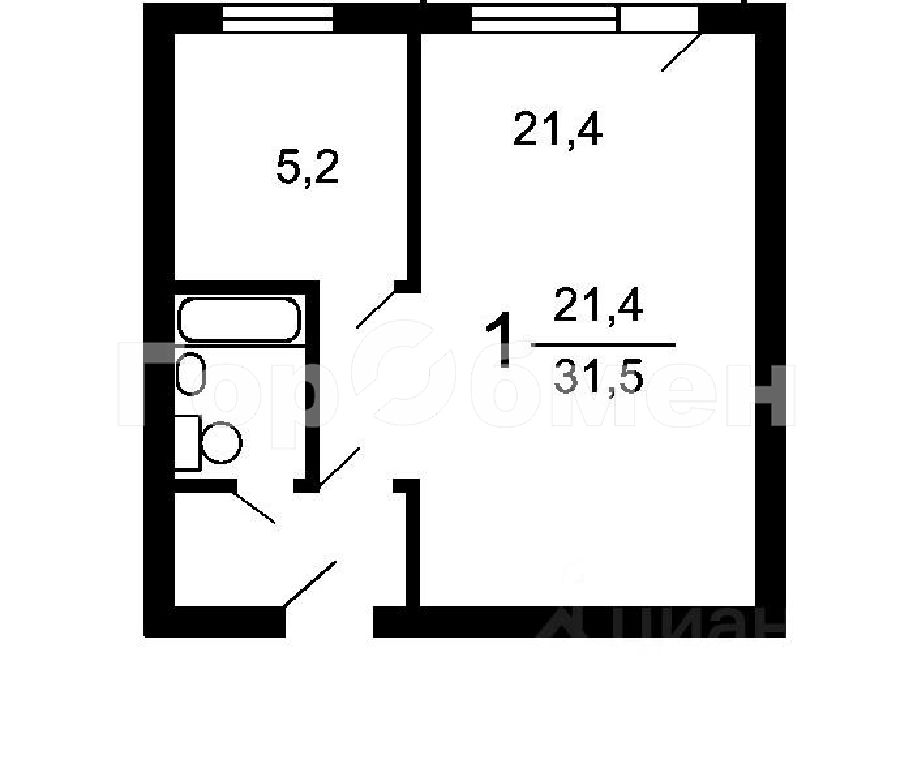 Общая: 31,7 м2