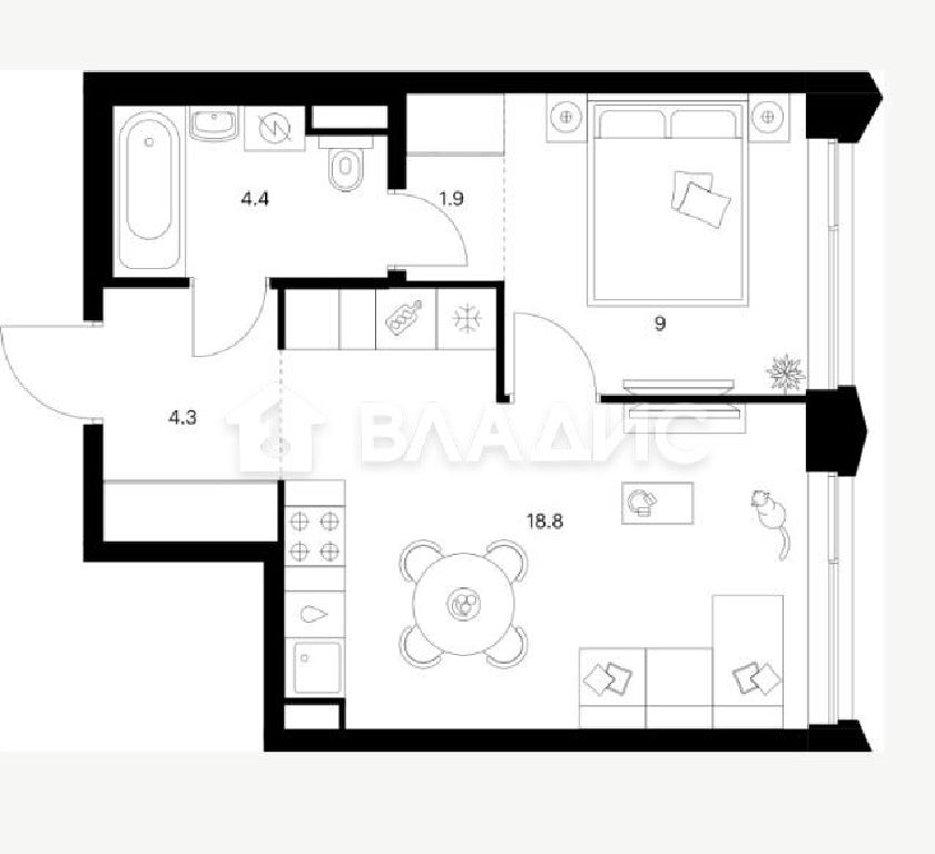 Жилая: 9,9 м2