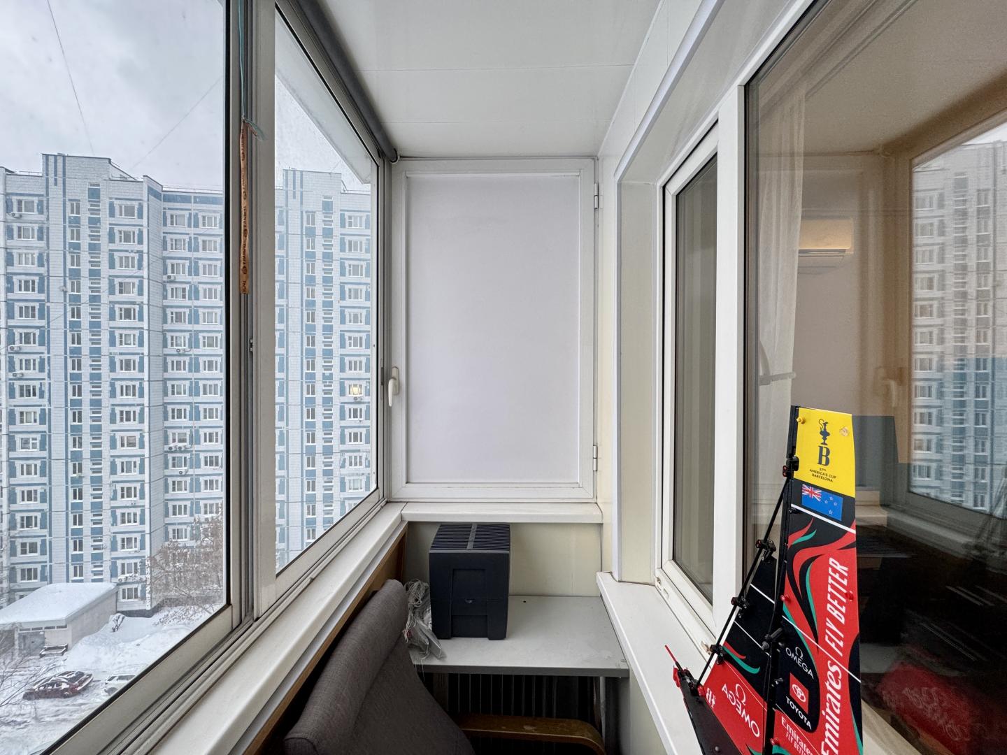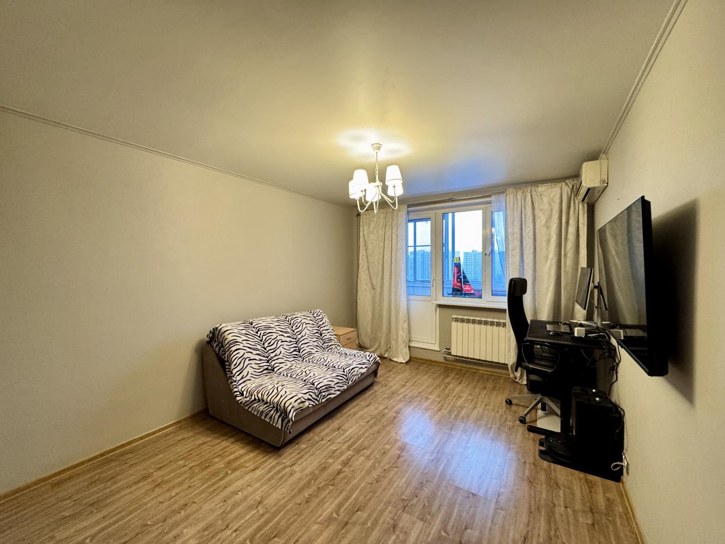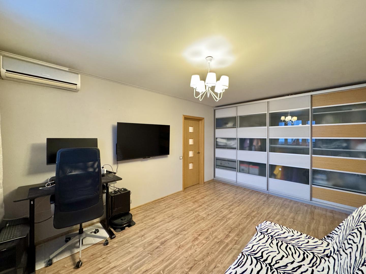В комнате установлены кондиционер и вместительный шкаф-купе. Остеклённая лоджия. Совмещенный санузел.