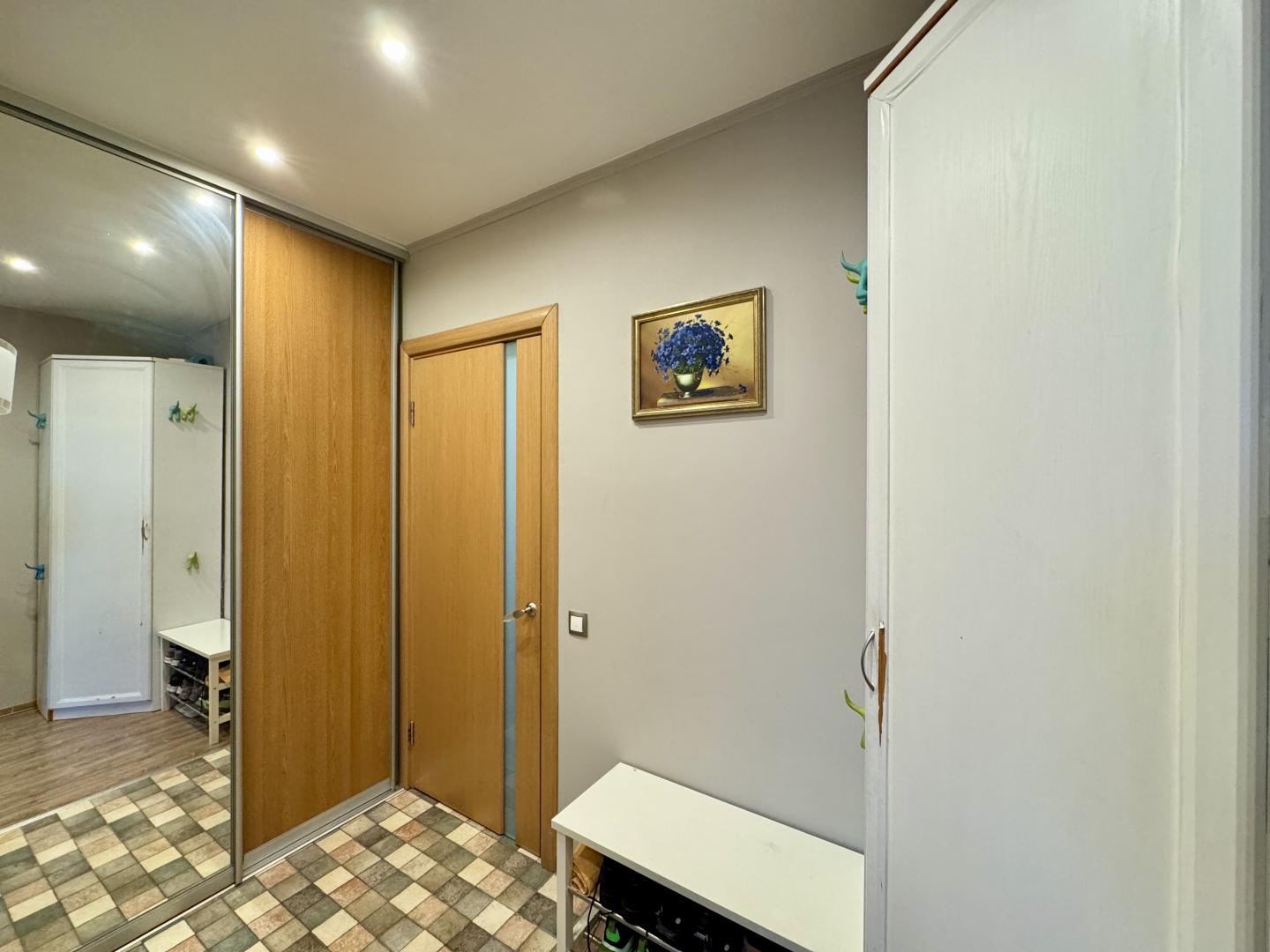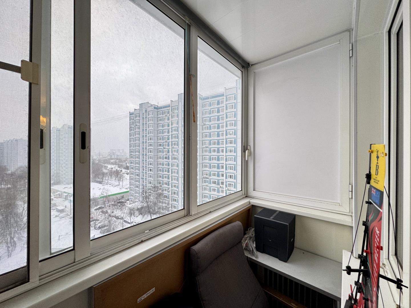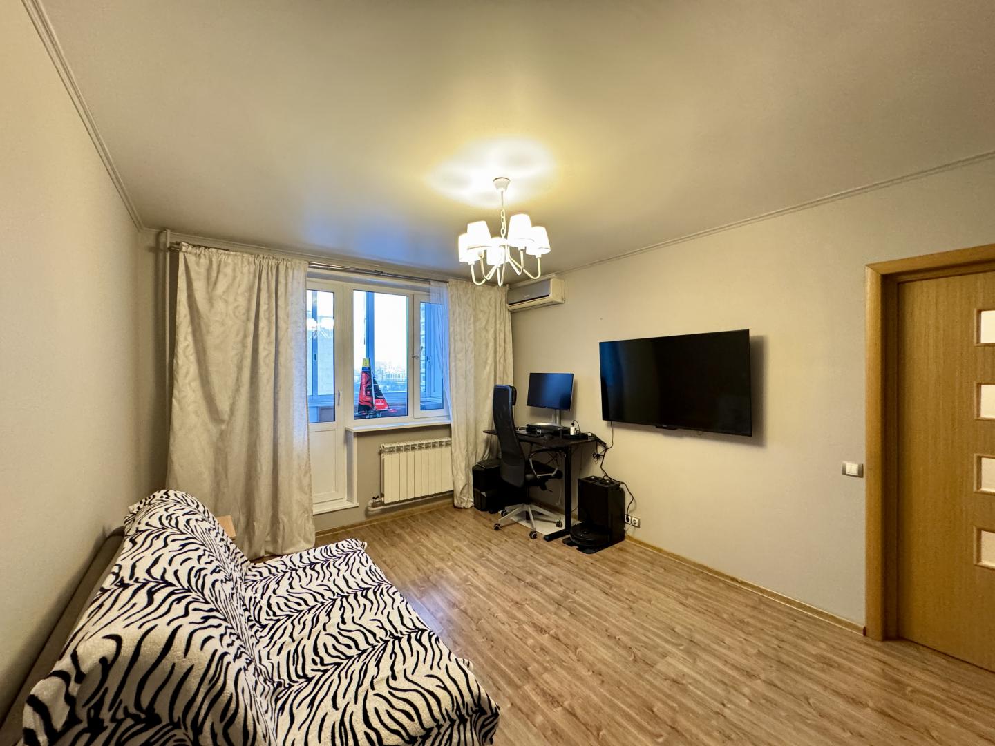 В комнате установлены кондиционер и вместительный шкаф-купе. Остеклённая лоджия. Совмещенный санузел.