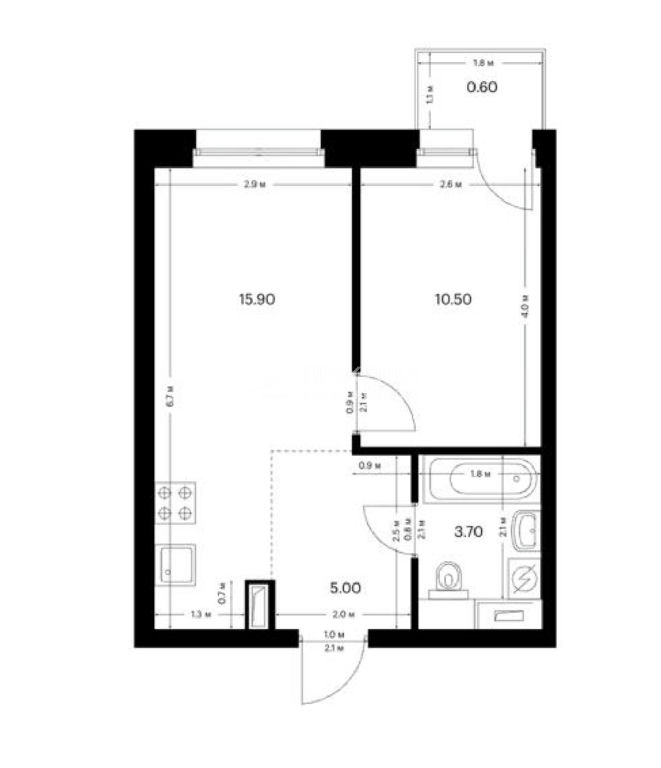 Жилая: 15,9 м2
