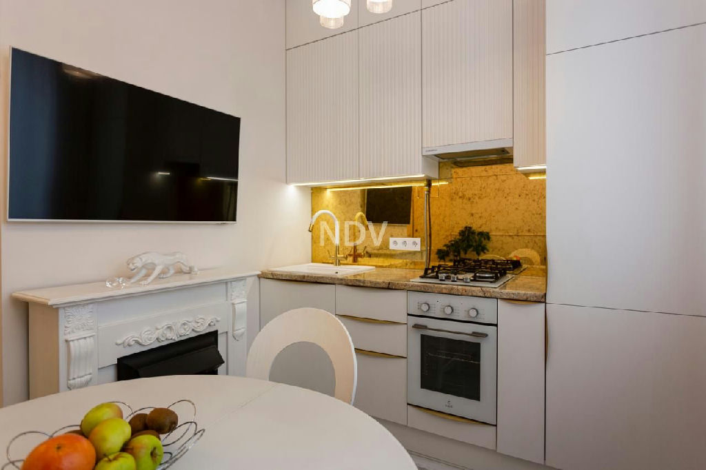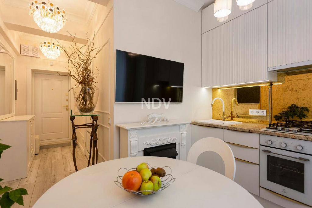 Общая площадь квартиры 37 кв.м, плюс остекленный балкон. Высота потолков более 3-х метров! В квартире буквально несколько месяцев назад закончен дорогой дизайнерский ремонт. Полностью заменены окна, двери, электрика, сантехника, выровнены и окрашены потолки и стены. Кухонный гарнитур, изготовленный на заказ, удовлетворит вкус самой взыскательной хозяйки: единая столешница, белая стеклокерамическая газовая варочная панель, духовой шкаф, вытяжка, встроенный холодильник. Кухонный фартук это потрясающе красиво состаренные золотые зеркала, которые в сочетании с прозрачными легкими светильниками визуально увеличивают пространство.