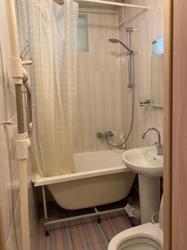Совмещённый санузел выполнен в современном стиле. Окна выходят во внутренний двор — тишина и покой, нет шума с улицы. Двор с ландшафтным дизайном.