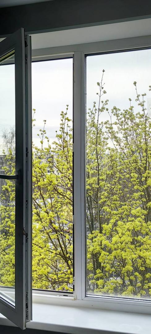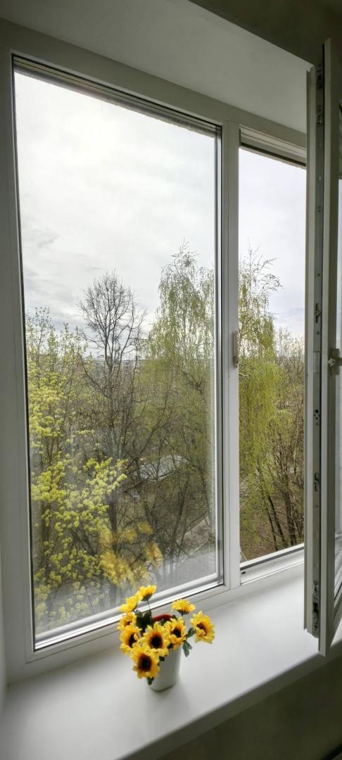 Дом в глубине от дороги, окна квартиры выходят в зеленый ухоженный двор. Прекрасный вид из окон!