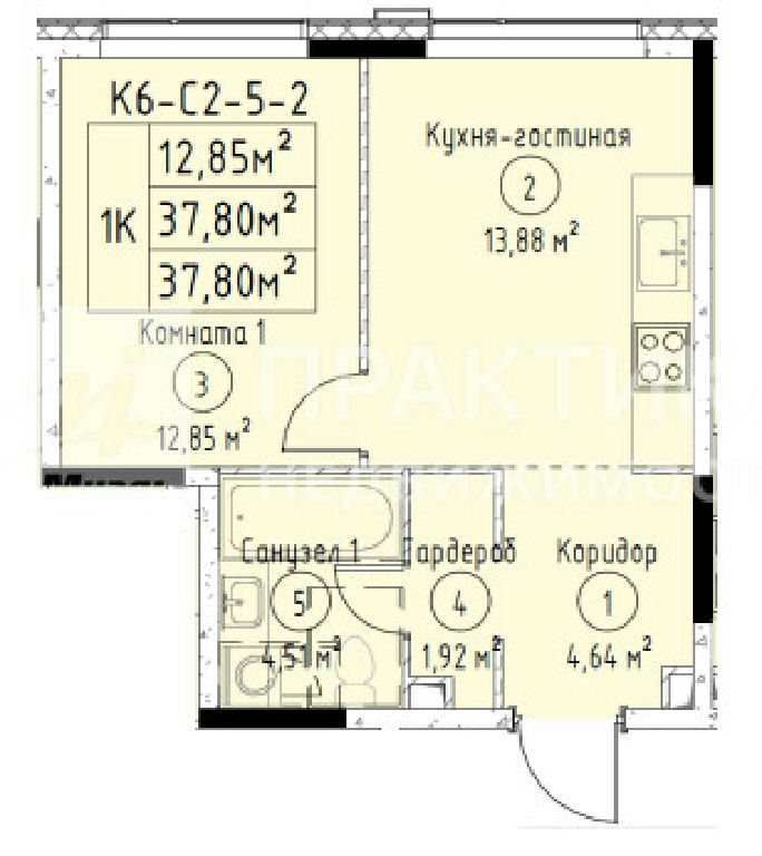 Общая: 37,8 м2