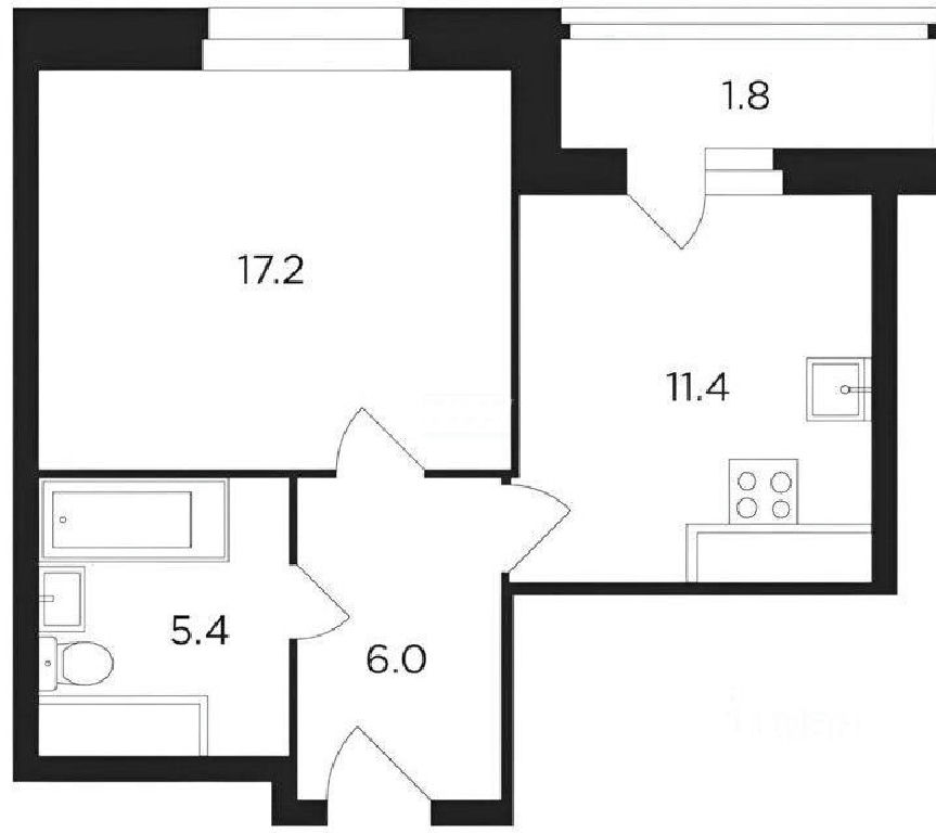По документам однокомнатная квартира площадью 41 м2.