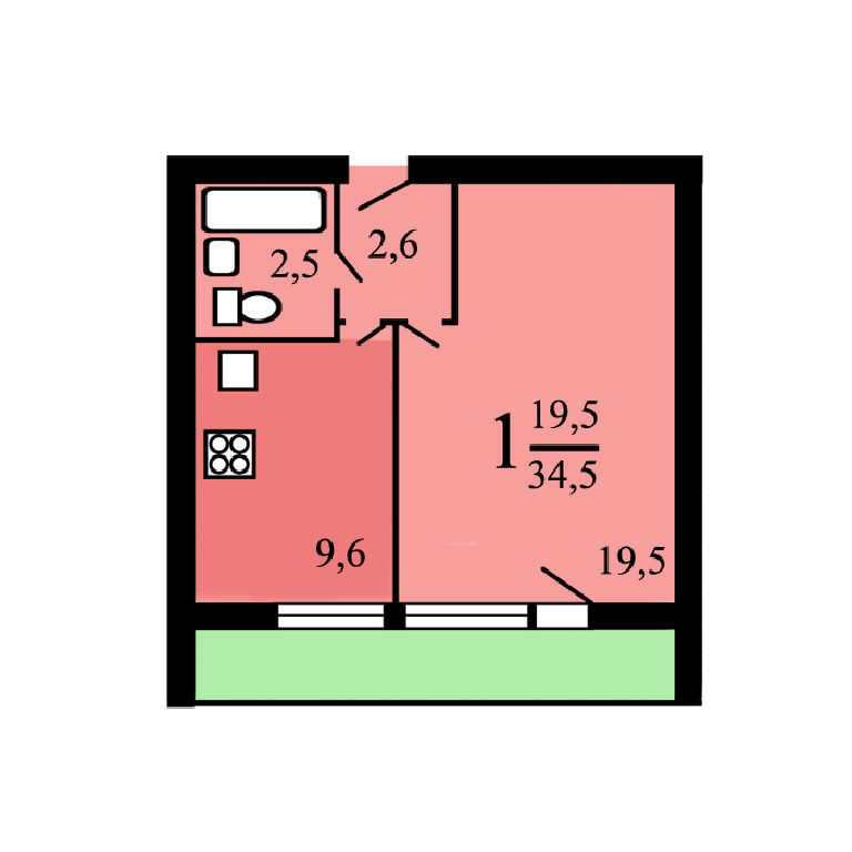 Кухня: 9,6 м2