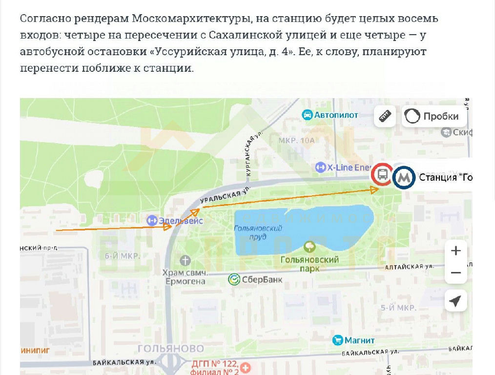 Комфортная удалённость от метро, всего в 1км. строится станция метро Гольяново.