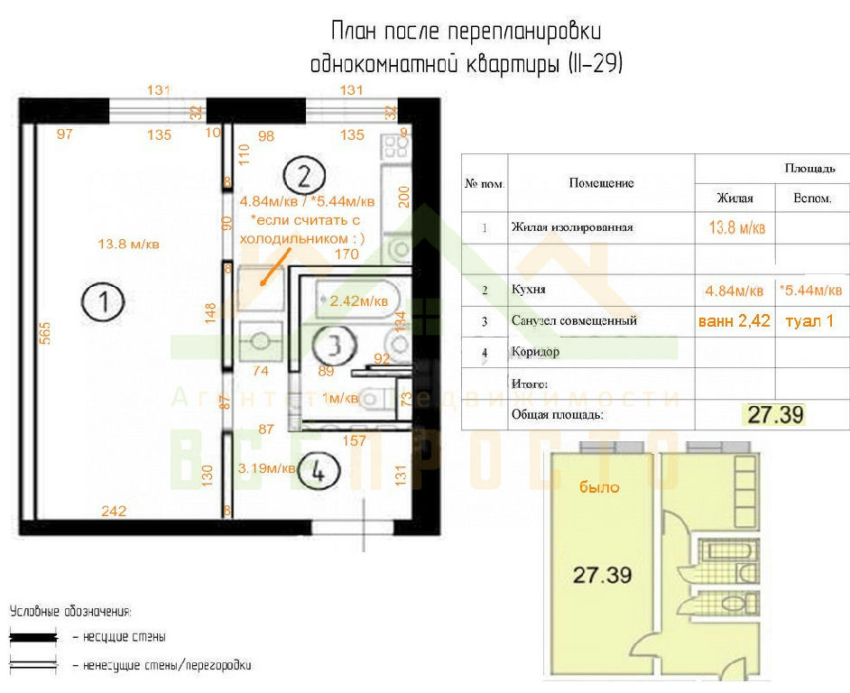 Общая: 27,4 м2