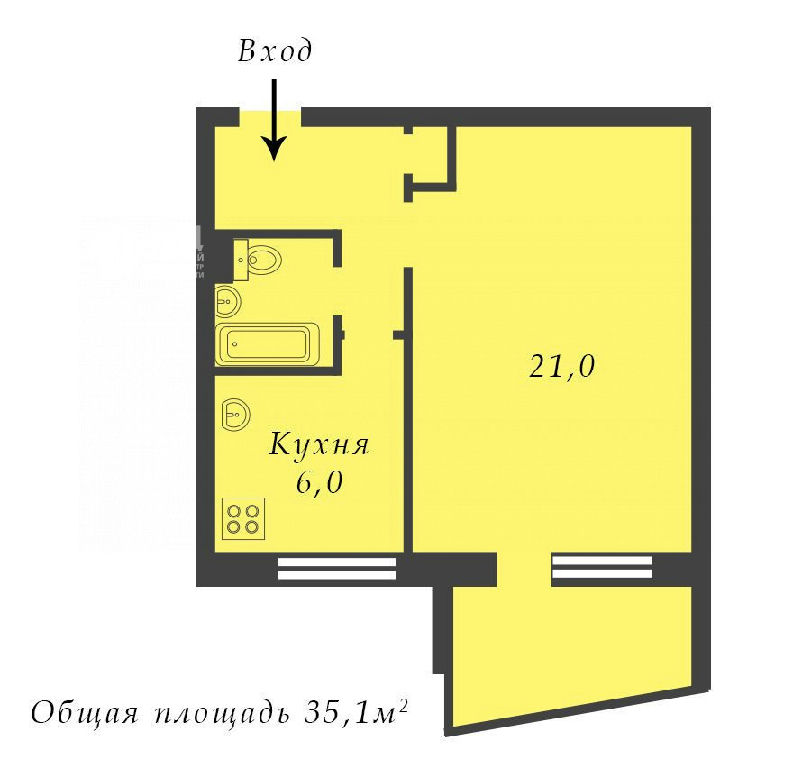 Общая: 35,1 м2