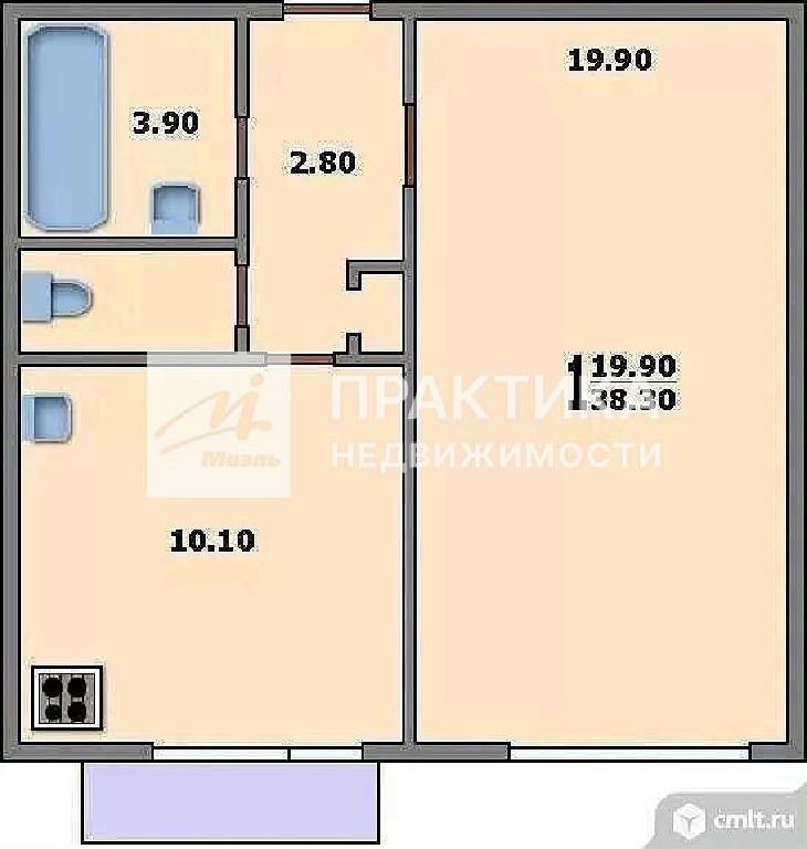 Общая: 38,3 м2