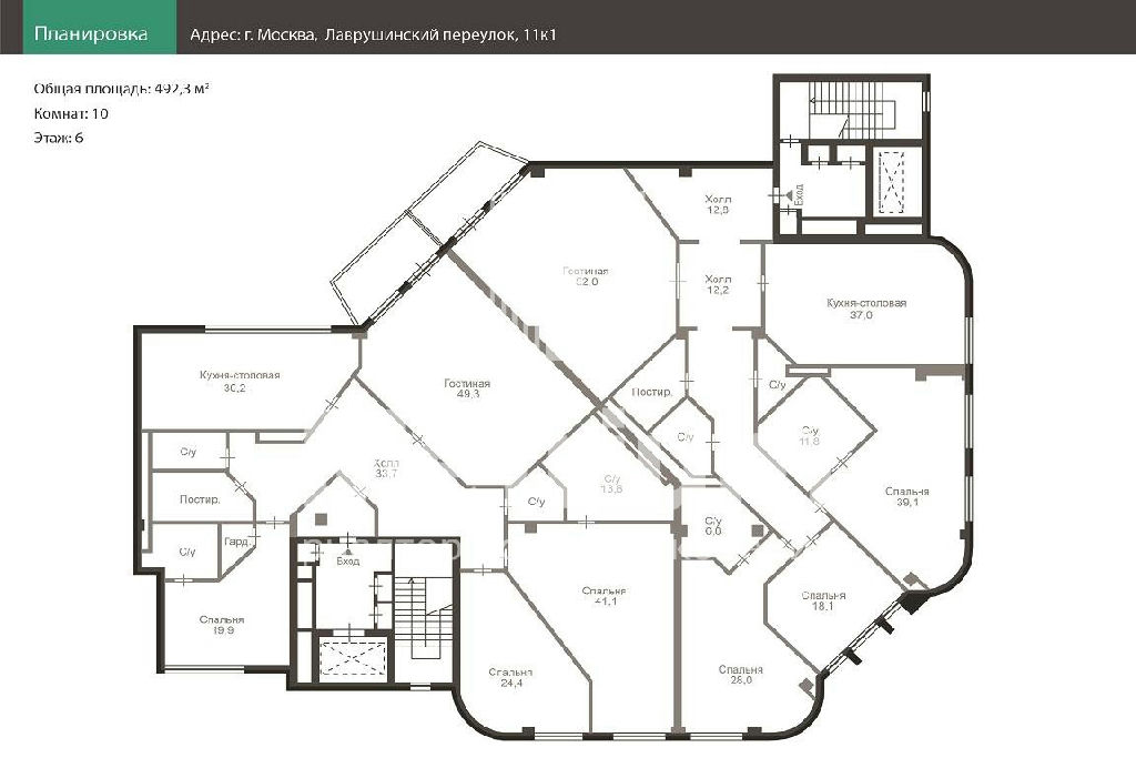 Общая: 492,3 м2