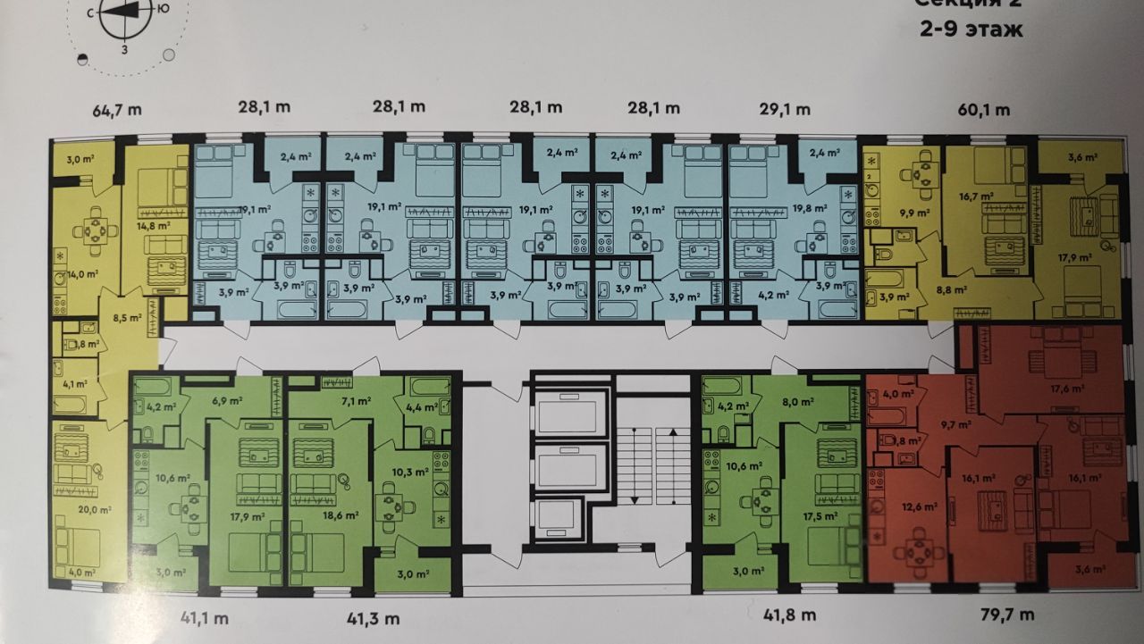 Общая: 62,4 м2