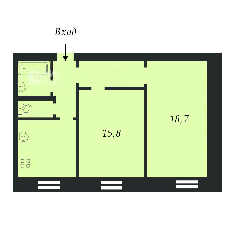 Комнаты: 18.7 15.8 м2