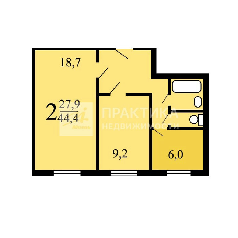 Общая: 44,4 м2