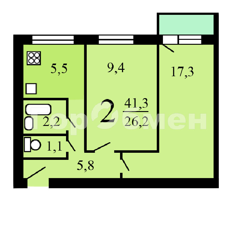 Общая: 40 м2