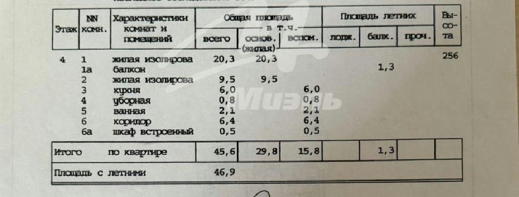 Общая: 45,6 м2