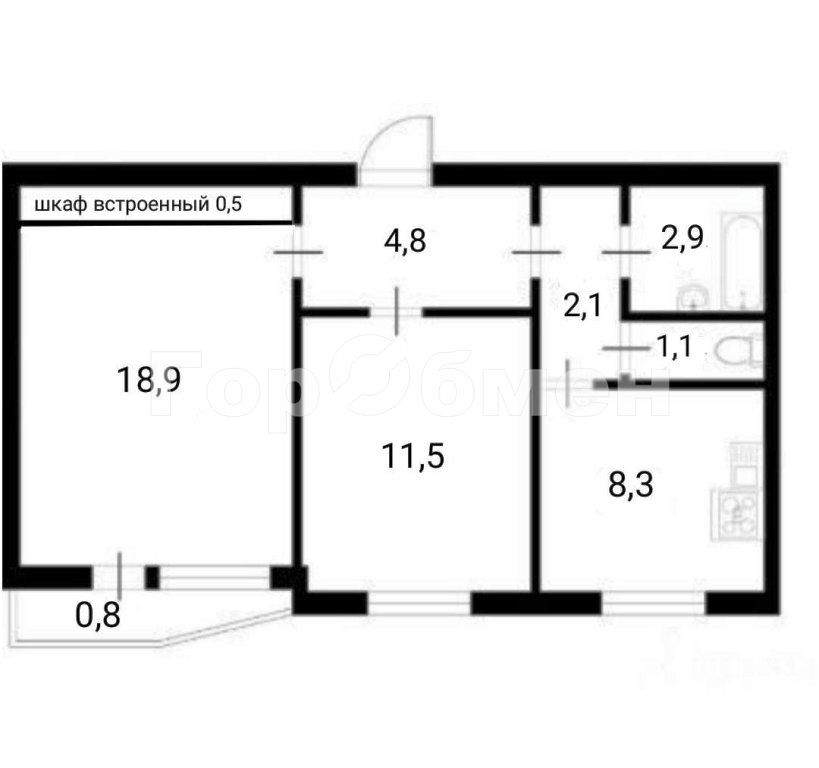 Можем рассмотреть обмен с доплатой на квартиру большей площадью (3-4 комнаты) в этом же районе.