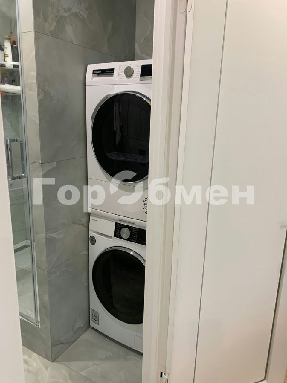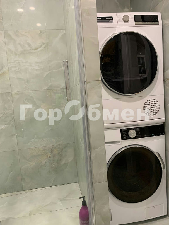 С/у совмещен, выложен крупноформатным керамогранитом (Италия), запилом на 45 градусов. Установлены: подвесной унитаз Roca, душевая система Hansgrohe, душевая дверь Wasser Kraft, смеситель Grohe, накопительный водонагреватель на 30 литров, электрический полотенцесушитель, стиральная машина Weissgauff, сделаны выводы для подключения сушильной машины.