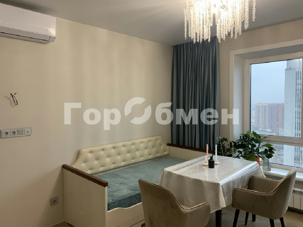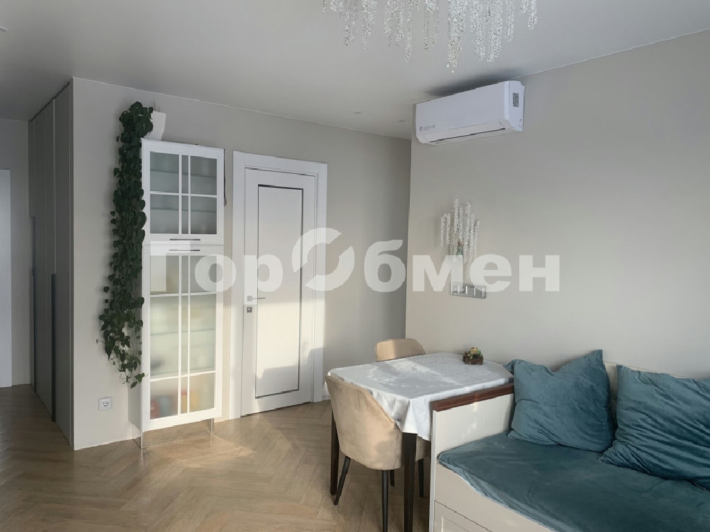 В комнате, кухне-гостиной, прихожей стены оштукатурены и окрашены. В спальне - обои. Пол - кварцвинил, выложен единым полотном. Потолок натяжной со встроенными светильниками. Установлены 2 кондиционера: один в кухне-гостиной, второй в комнате 15 кв.м.