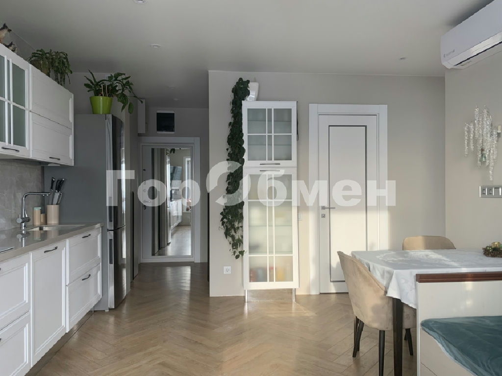 В квартире произведен качественный ремонт с полной заменой электрики, сантехники, труб отопления, батарей, трасс кондиционирования. Установлена новая входная дверь с большим зеркалом.
