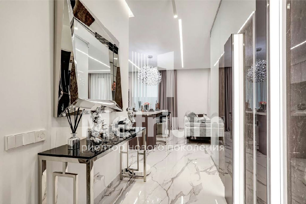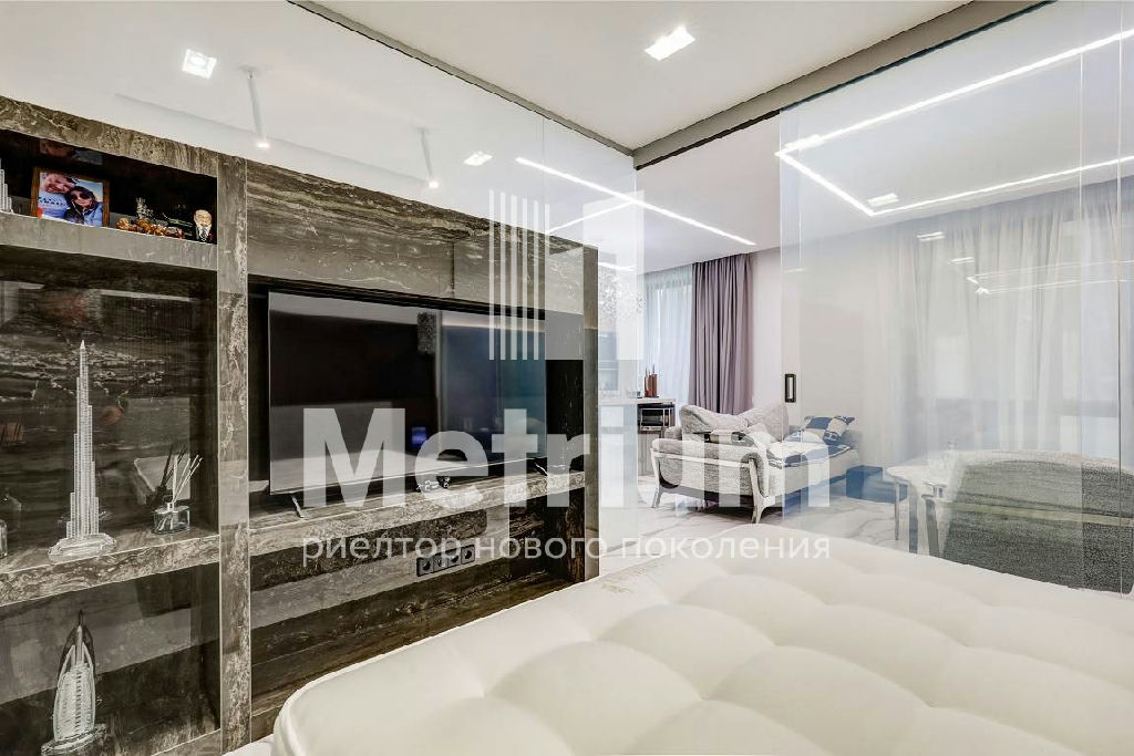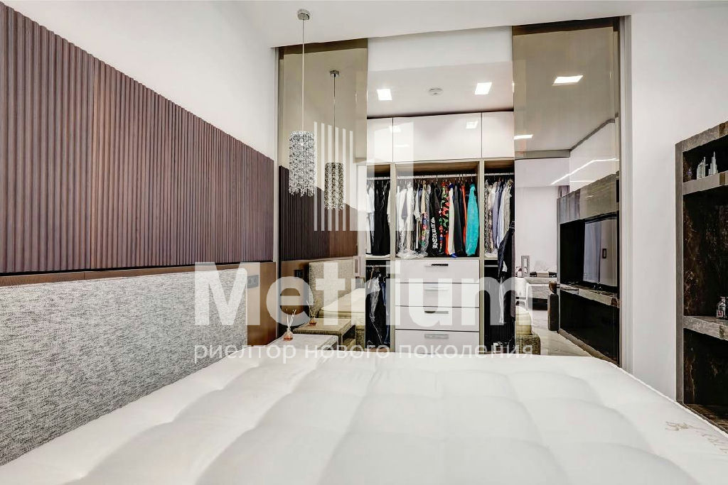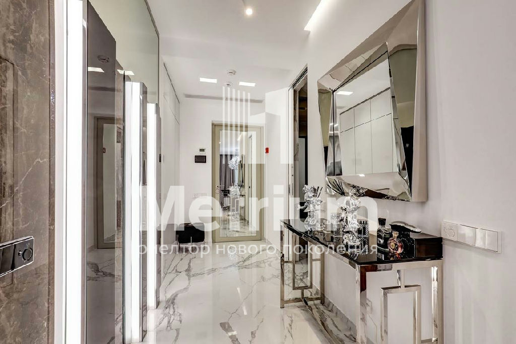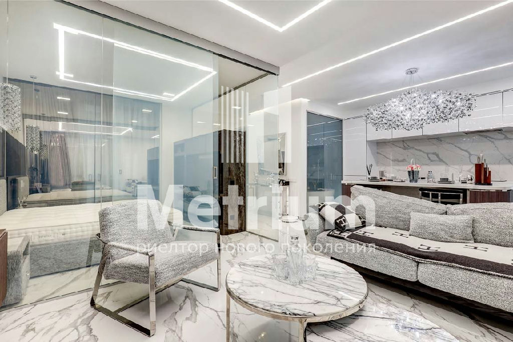 В квартире выполнен качественный дизайнерский ремонт с применением высокотехнологичных материалов. Умное стекло (электронные перегородки), теплые полы по всей площади, электропривод штор, датчики движения, встроенный кондиционер, мастер-выключатель.