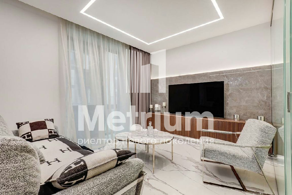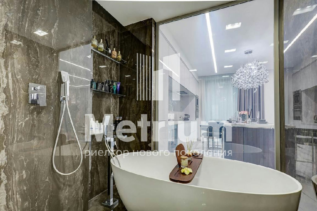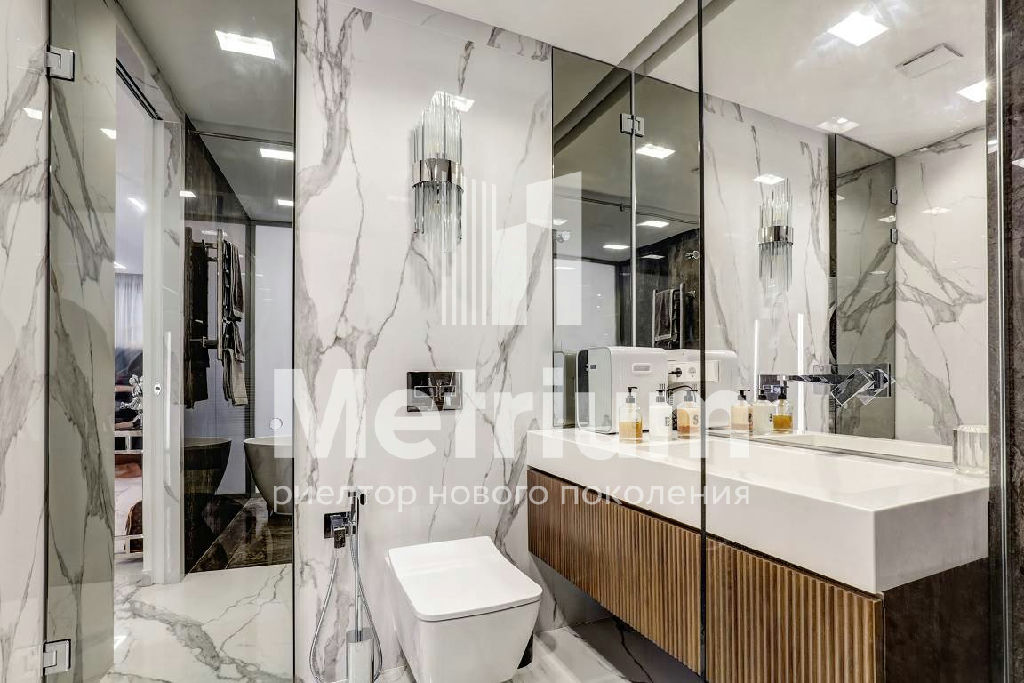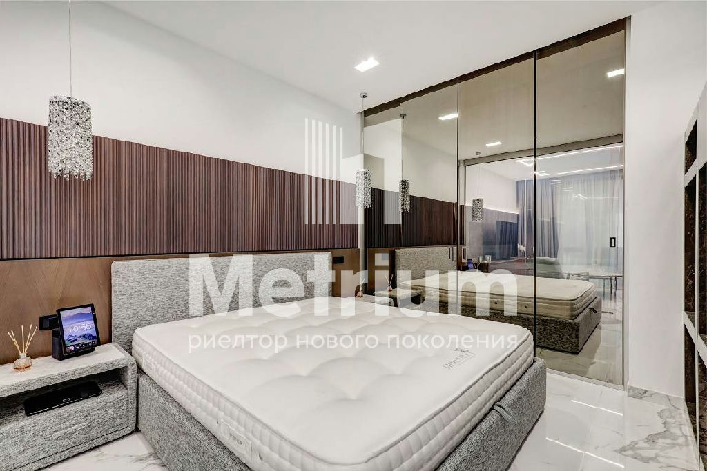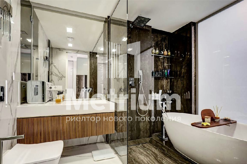 В квартире выполнен качественный дизайнерский ремонт с применением высокотехнологичных материалов. Умное стекло (электронные перегородки), теплые полы по всей площади, электропривод штор, датчики движения, встроенный кондиционер, мастер-выключатель.