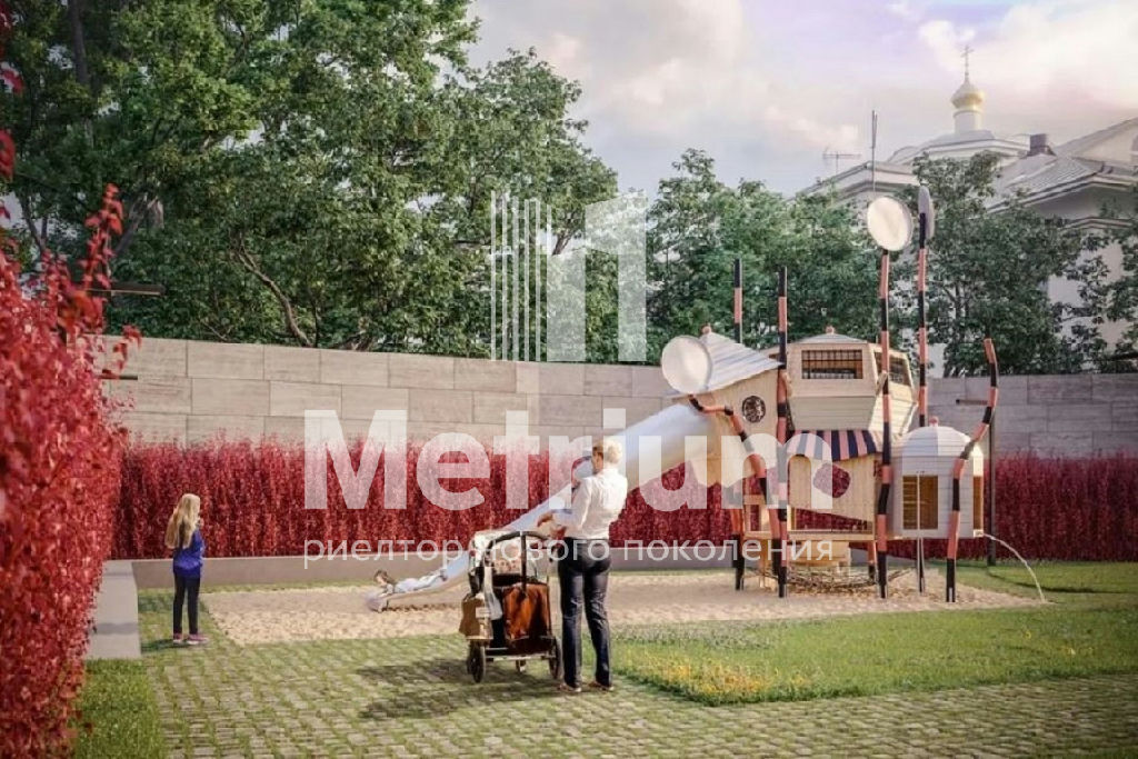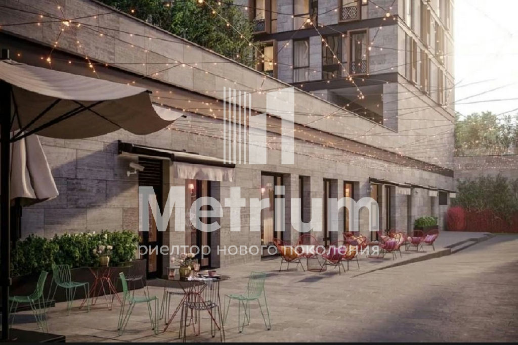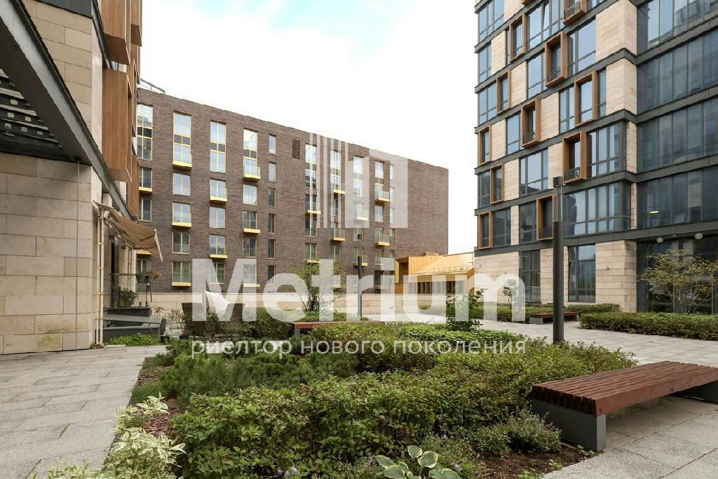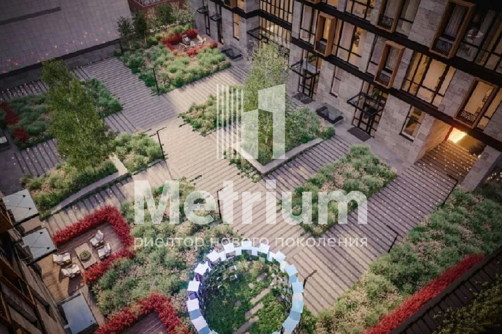 Панорамные окна выходят в тихий закрытый двор с водопадом.