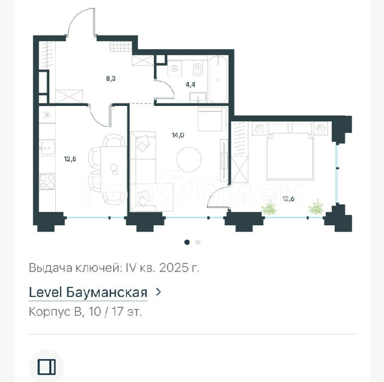 Комнаты: 14 12.6 м2