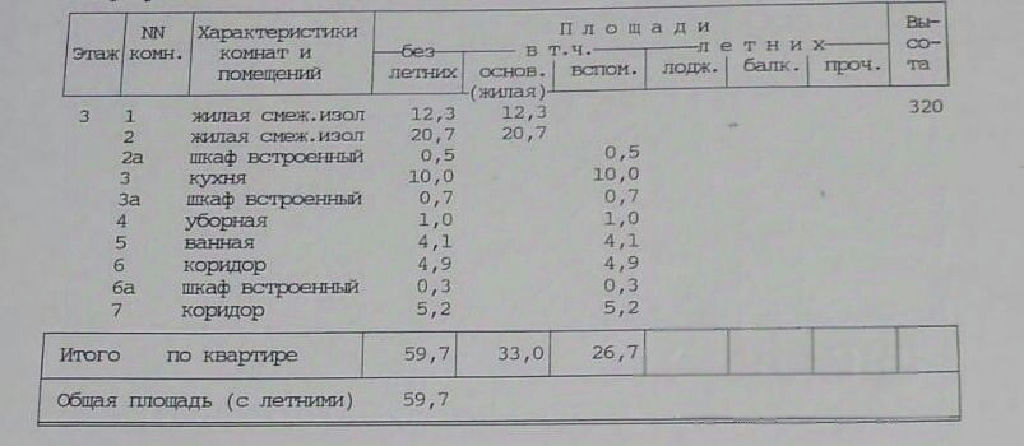 Общая: 59,7 м2