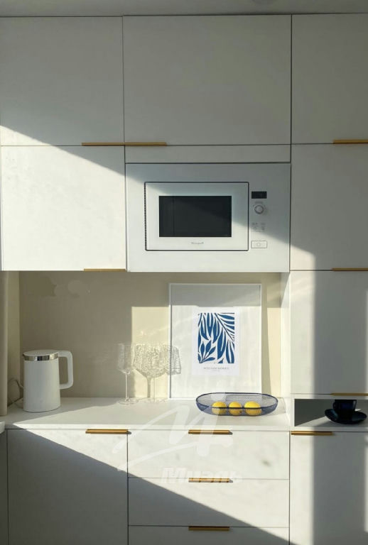 -небольшая, но грамотно спланированная кухня с большим количеством места для хранения, встроенная техника ( холодильник, варочая панель, духовой шкаф, вытяжка, микроволновая печь)