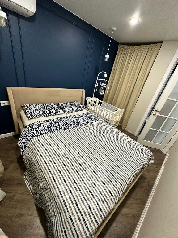 Вторая комната- спальня с гардеробной нишей с каркасным хранением ( легко модифицируется) и кондиционером.