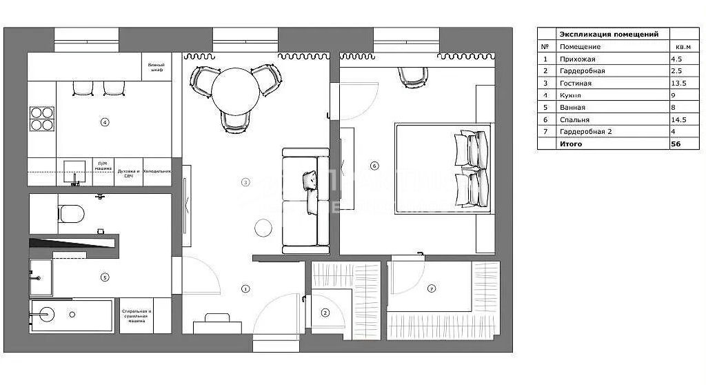 Общая: 56 м2