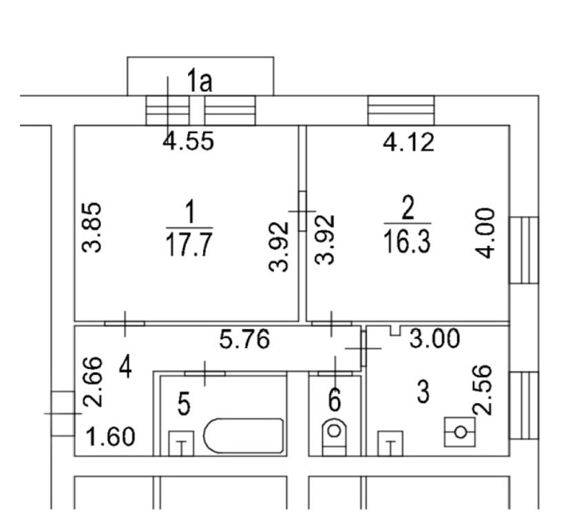 Две изолированные комнаты 17,7 и 16,3 кв.м, кухня 7,6 кв.м., просторная прихожая, раздельный санузел, балкон.