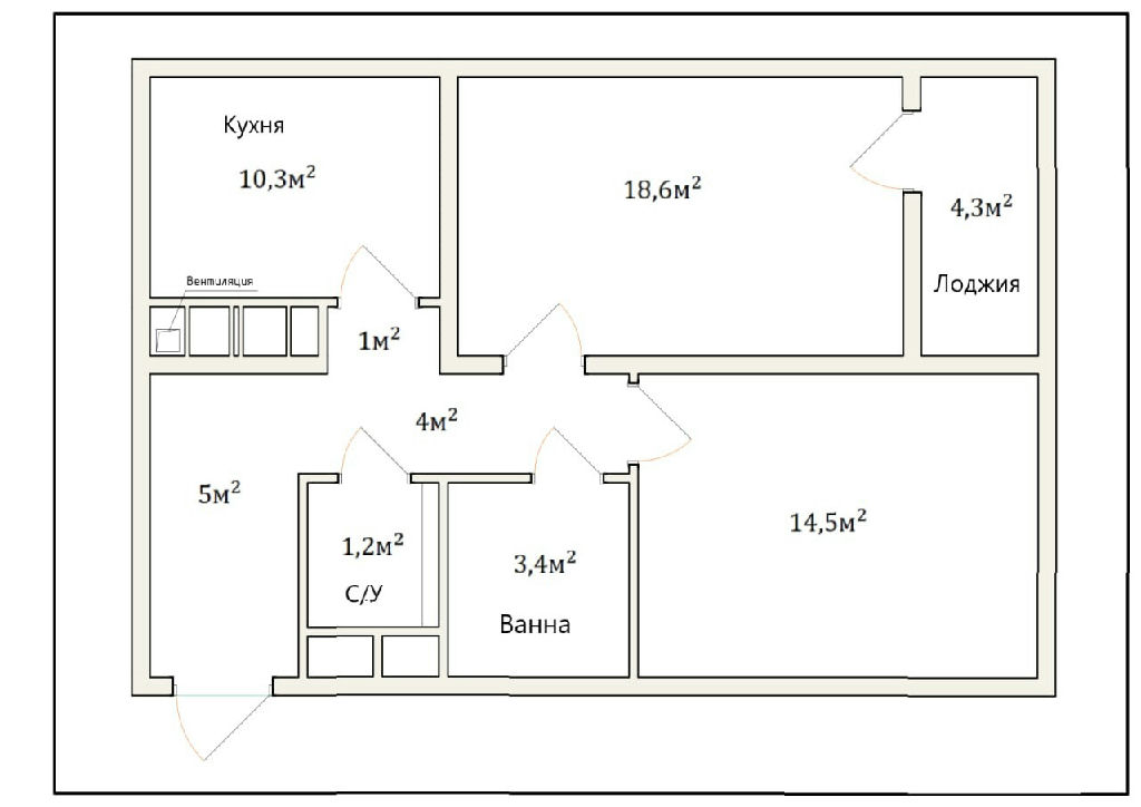 Общая: 58,2 м2